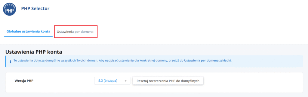 - może mieć niezależnie ustawioną wersję PHP – od 7.4 aż po najnowsze wydania serii 8.x,